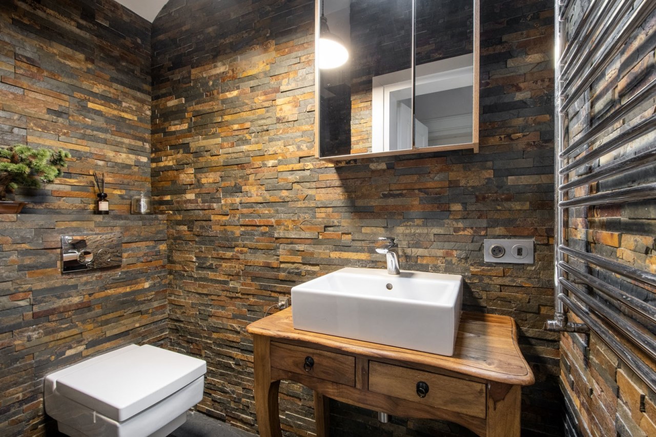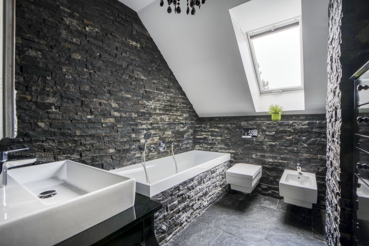 elewacja domu w całości wykonana z obudowy kamiennej.